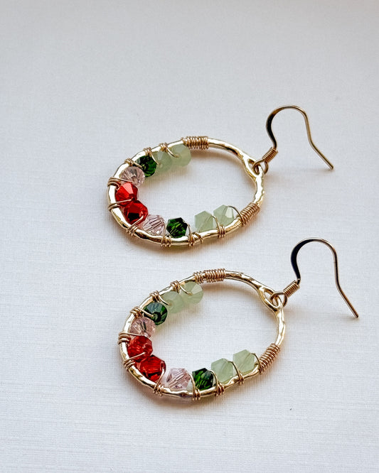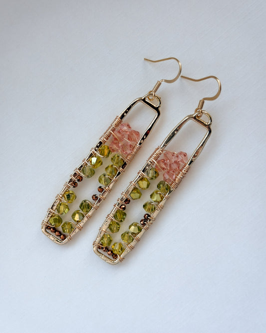 Our wire-weaving technique builds architectural scaffold frames around crystal glass beads and freshwater pearls, using 24k gold-plated stainless steel and recycled brass. Each piece woven by hand, one structure at a time.