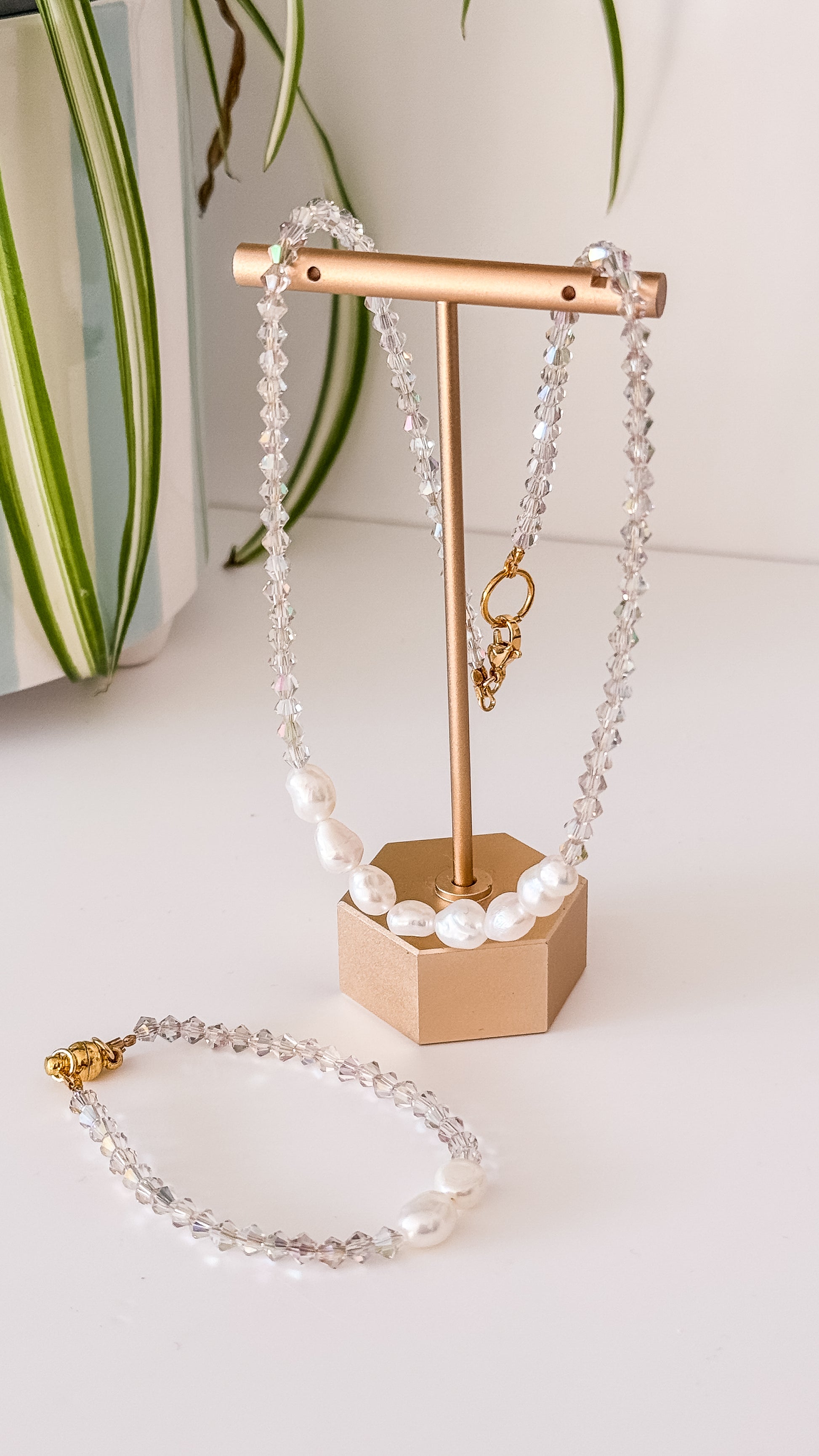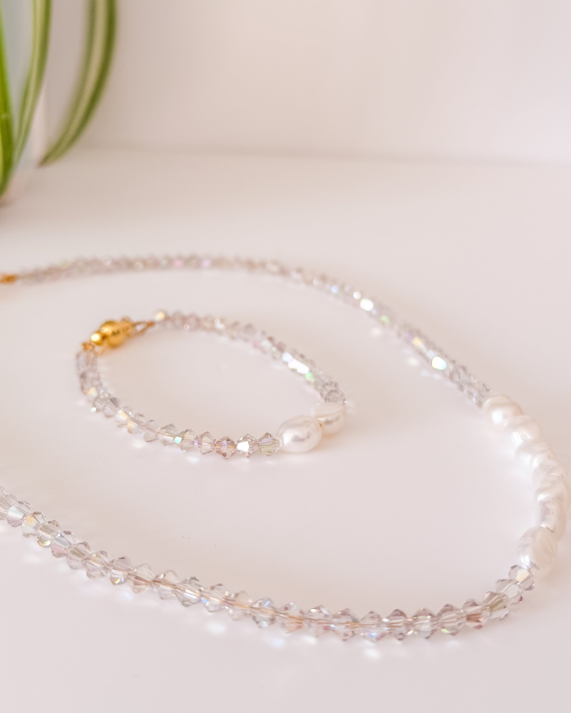 Bridal Shimmer Set - Necklace and Bracelet in 24k Gold Plated Sterling Steel & Glass