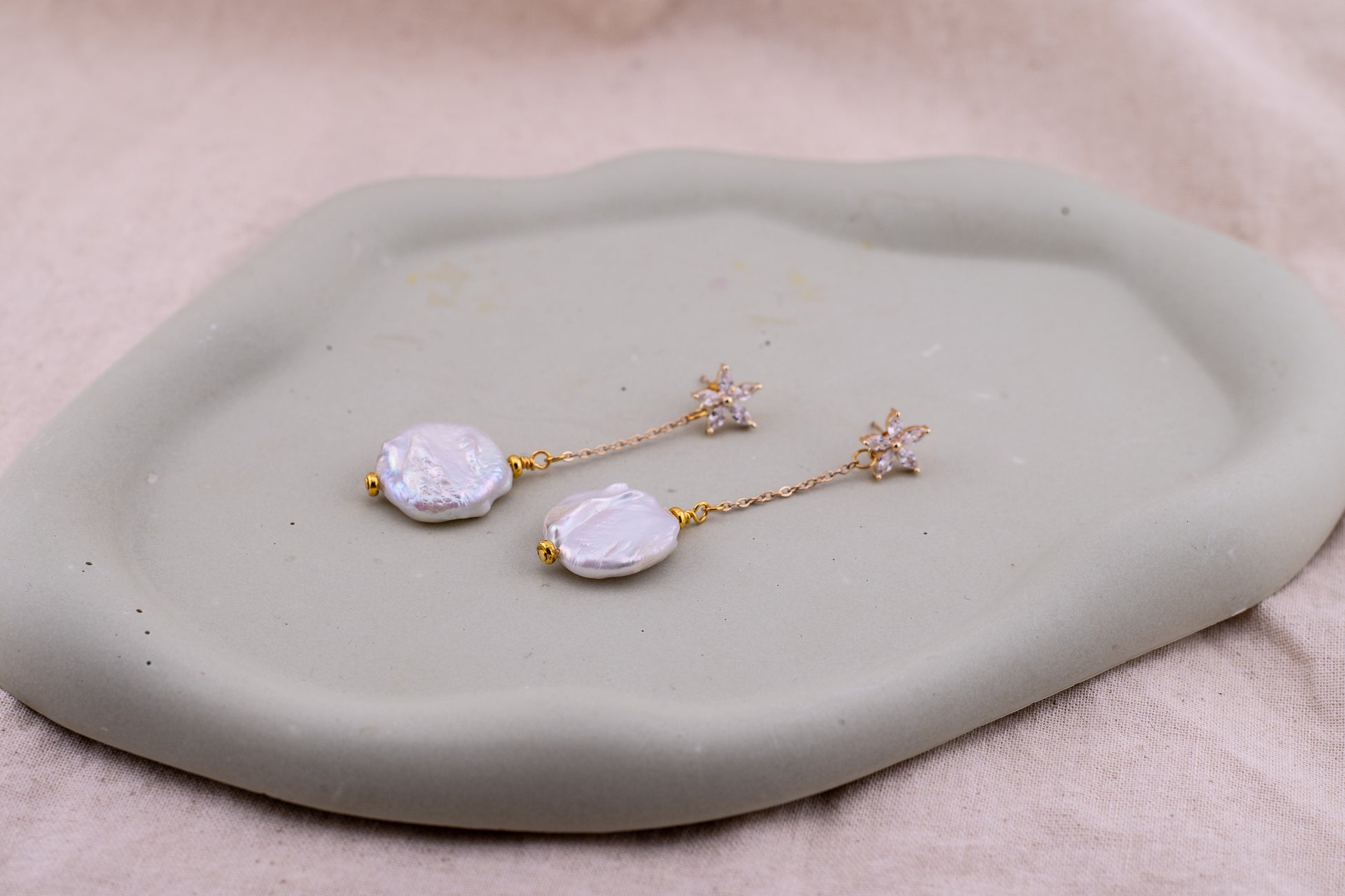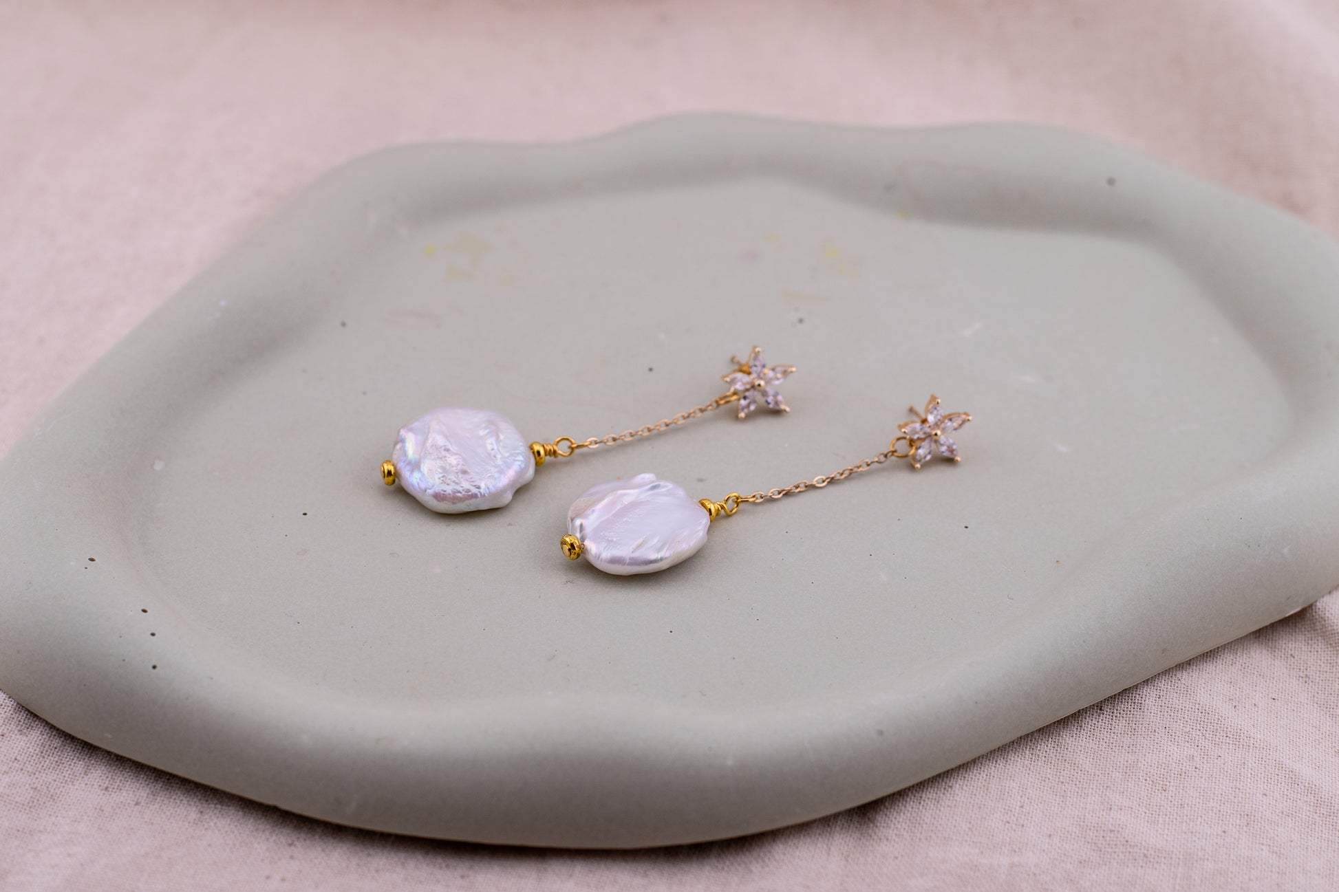 Celebrate the artistry of nature with the Fleur de Nacre Drops. These stunning earrings pair the raw, organic beauty of one-of-a-kind baroque pearls with the refined brilliance of cubic zirconia floral studs. Because every baroque pearl is naturally unique in its shape and lustre, no two pairs are ever exactly alike—making these a truly bespoke addition to your jewellery collection.
